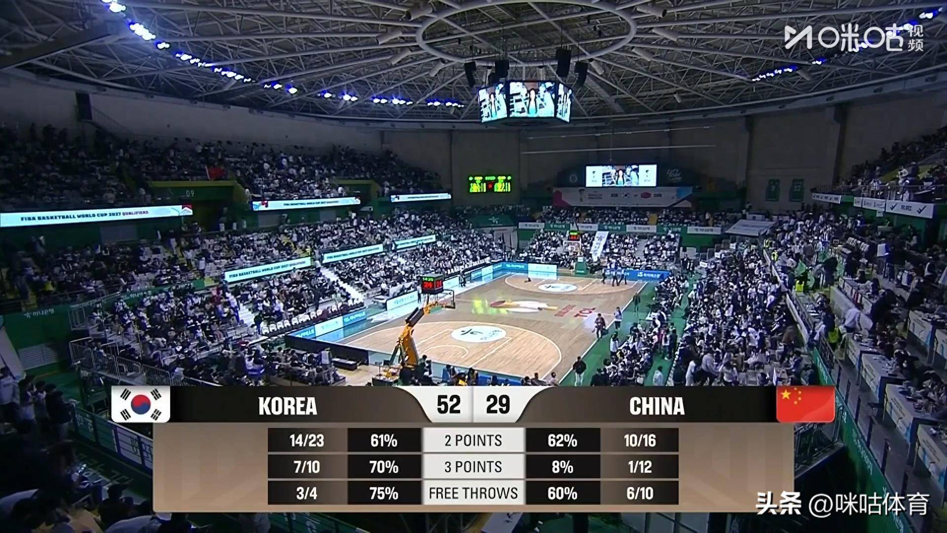 第二节比赛中国队再度被拉开8分分差,上半场中国队29-52大比分过期。